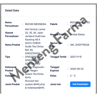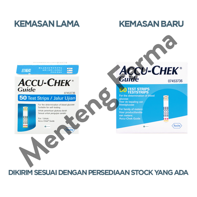 - Accu-Chek Guide 50 Test Strip hanya bisa digunakan dengan alat tes gula darah merek Accu-Check Guide dan Accu-Chek Guide Me.