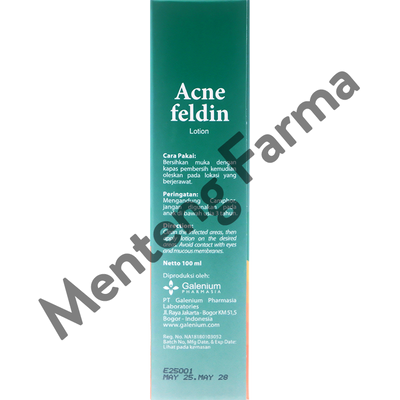 - Meredakan peradangan pada kulit Kandungan asam salisilat dalam Acne Feldin Lotion juga dapat meredakan peradangan pada kulit akibat jerawat. Hal ini membantu mengurangi kemerahan dan pembengkakan pada kulit.