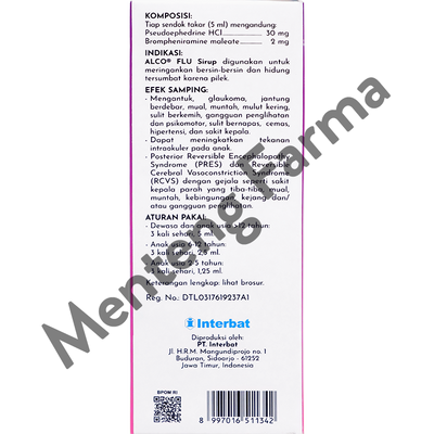 Alco Flu Sirup 100 ml adalah solusi yang efektif untuk meredakan batuk dan pilek. Sirup ini Bekerja sebagai dekongestan hidung dan antihistamin. Dengan kandungan bahan aktif yang telah terbukti meredakan gejala pernapasan, Alco Plus Sirup membantu melegakan tenggorokan yang teriritasi dan mengurangi kekambuhan batuk.