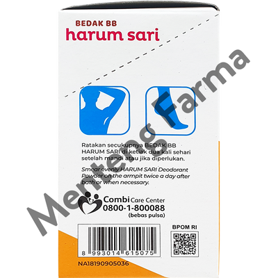 Khasiat dari Bedak BB Harum Sari Isi 10 Sachet adalah dapat membantu menghilangkan bau badan yang tidak sedap dan memberikan kesegaran serta keharuman pada tubuh Anda. Selain itu, bedak ini juga membantu menyerap keringat dan minyak pada kulit, sehingga kulit terlihat lebih kering dan tidak lengket.