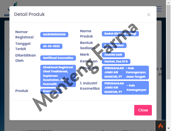 Diproduksi Oleh : PT Perusahaan Jamu Air Mancur