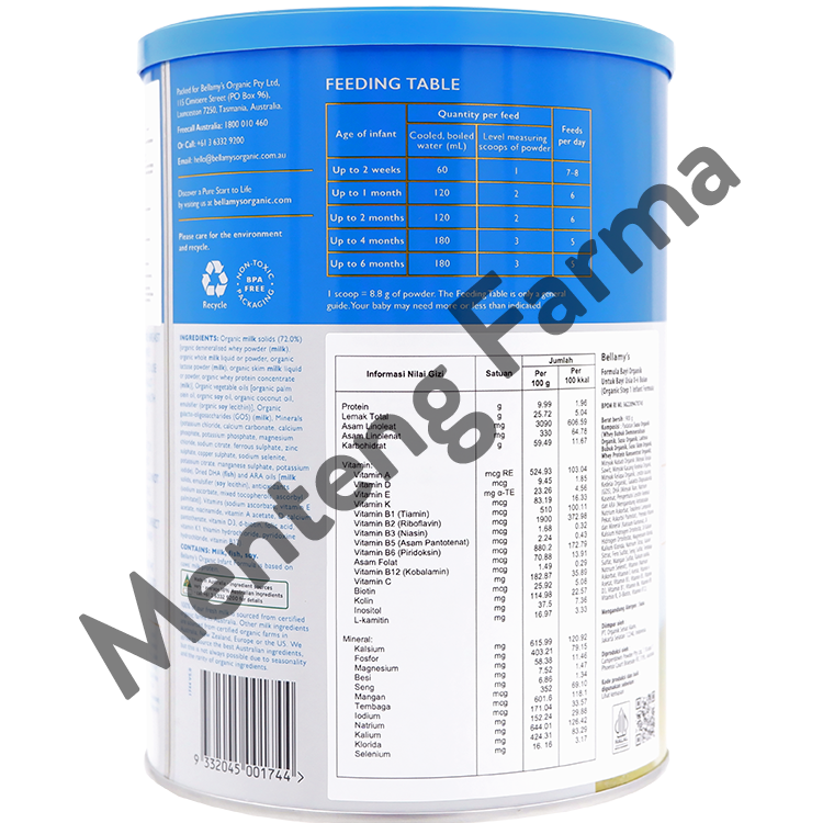Susu formula ini mengandung nutrisi penting seperti DHA, ARA, vitamin, dan mineral yang diperlukan untuk mendukung pertumbuhan dan perkembangan bayi secara optimal. Diproses tanpa tambahan gula, pewarna, atau pengawet buatan, Bellamy's memastikan kualitas dan keamanan tertinggi bagi bayi Anda.