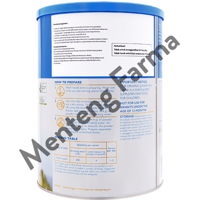 Organic milk solids, Organic Skim Milk, Organic Whey Powder (Demineralized), Organic Lactose, Organic Vegetable Oils (Sunflower Oil, Coconut Oil, Canola Oil), Galacto-oligosaccharides (GOS), Milk Minerals, Fish Oil (source of DHA), Mortierella Alpina Oil (source of ARA), Calcium Carbonate, Magnesium Chloride, Potassium Citrate, Ascorbyl Palmitate, Vitamin A, Vitamin D, Folic Acid, Biotin, etc.