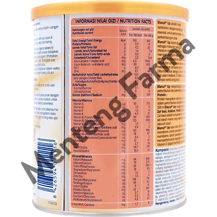 BLENUT UP adalah pilihan sempurna untuk memenuhi kebutuhan nutrisi anak usia 1-10 tahun yang beresiko mengalami gagal tumbuh, gizi kurang dan/atau gizi buruk. . Blenut Up adalah nutrisi tambahan dengan kandungan esensial untuk pertumbuhan dan perkembangan anak.