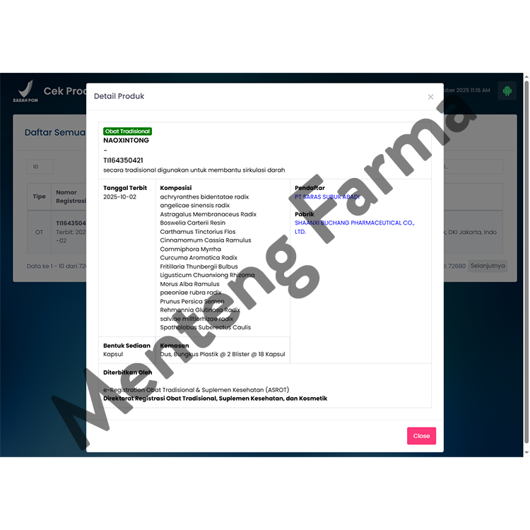 Buchang Naoxintong merupakan obat herbal china yang secara tradisional digunakan untuk membantu sirkulasi darah.