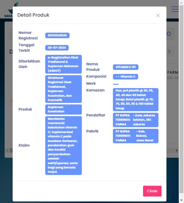 BPOM No : SD 211552121, SD 211595851 & SD 141546241