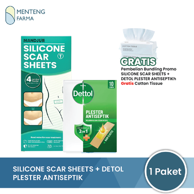 2. Silicone Scar Sheets Mandjur merupakan perawatan bekas luka berbahan silicon gel medis yang efektif untuk menyamarkan dan mengurangi bekas luka kemerahan atau menggelap, luka bekas jahitan operasi, jerawat, dan keloid.