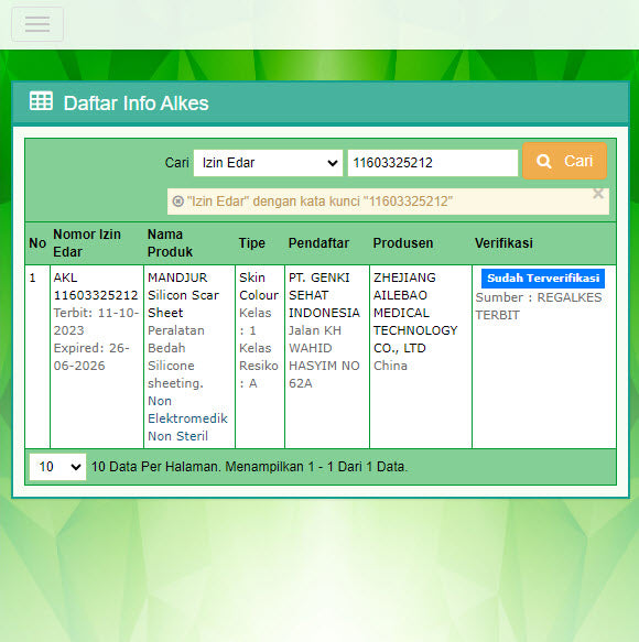 KEMENKES NO : AKL 11603325212 & AKL 10902421173