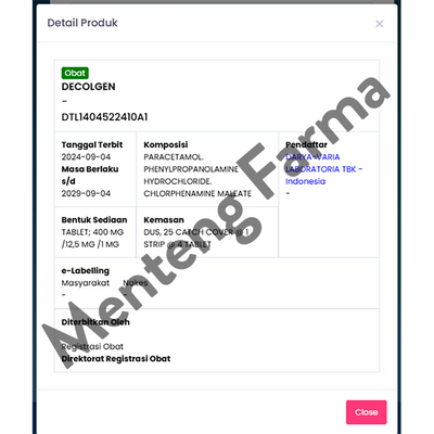 BPOM No : Reg. No. DTL 1604525710A1