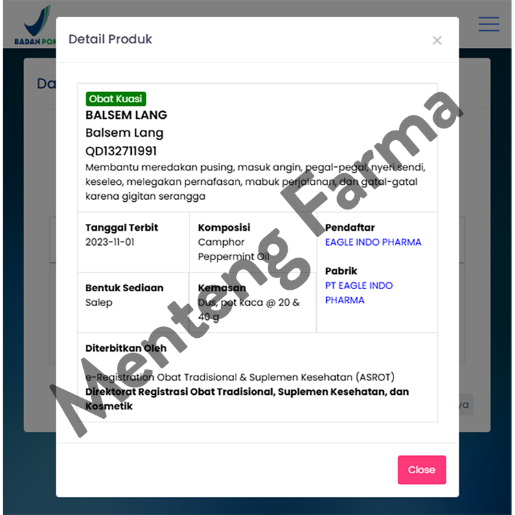 Produksi Oleh : PT. Eagle Indo Pharma