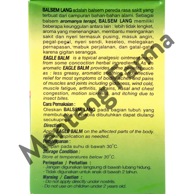 Balsem Lang adalah balsem pereda rasa sakit yang terbuat dari campuran bahan-bahan alami. Sebagai balsem aromanya terapi, Balsem Lang memiliki beberapa keunggulan antara lain; lebih tidak lengket, aroma yang menenangkan, membantu meringankan sakit dan nyeri termasuk pusing, masuk angin, sakit dan nyeri sendi, keseleo, melegakan pernafasan, mabuk perjalanan, dan gatal-gatal karena gigitan serangga.