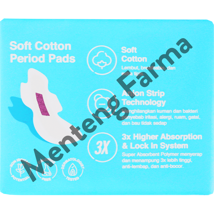 Dilengkapi dengan anion strip yang berfungsi untuk menjaga kebersihan, dapat menghilangkan kuman/bakteri penyebab bau tidak sedap, iritasi, ruam, alergi, dan keputihan.