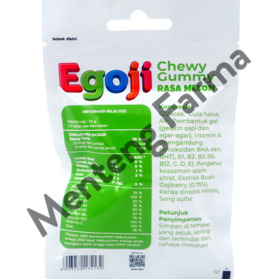 Egoji Chewy Gummy Melon adalah permen gummy yang mengandung Vitamin C dalam bentuk yang lezat dan menyenangkan untuk dikonsumsi anak-anak. Setiap permen gummy memberikan dosis yang tepat dari Vitamin C yang diperlukan untuk menjaga kesehatan dan daya tahan tubuh anak. Dengan rasa melon yang segar dan manis, permen gummy ini menjadi pilihan yang baik untuk memenuhi kebutuhan nutrisi harian anak dengan cara yang menyenangkan.