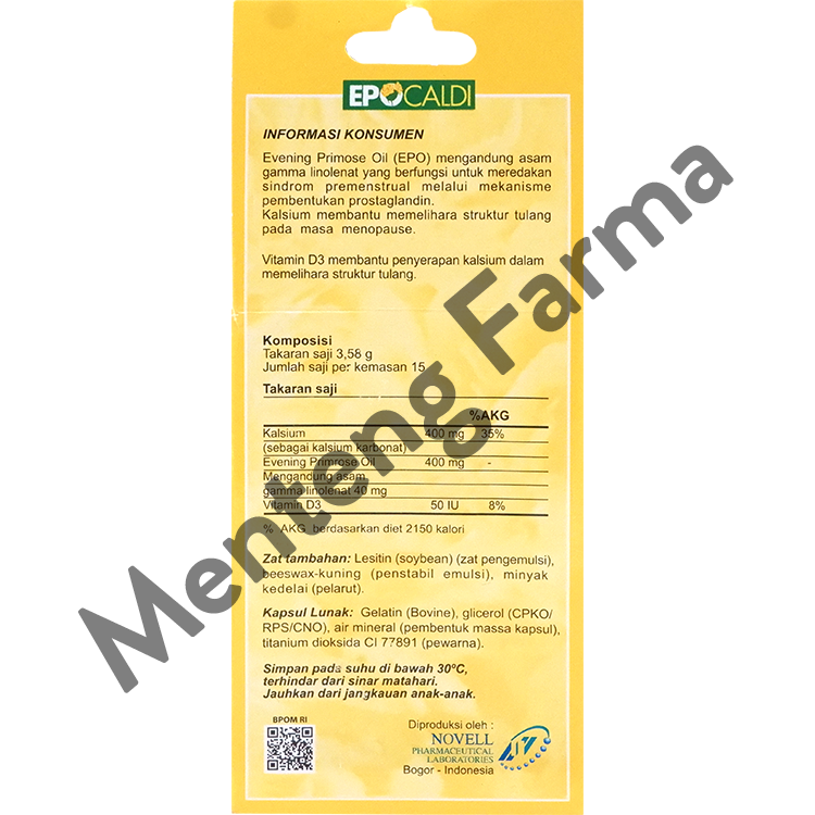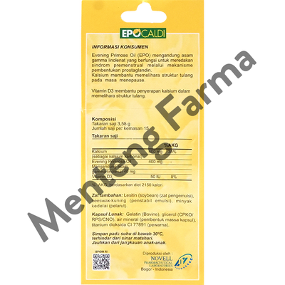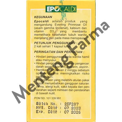 Epocaldi adalah suplemen kesehatan yang mengandung Evening Primrose Oil, kalsium dan Vitamin D3 yang membantu dalam memelihara kesehatan tubuh wanita menjelang dan pada masa menopuase. Evening Primrose Oil (EPO) mengandung asam gamma linoleat yang berfungsi untuk meredakan sindrom premenstrual melalui mekanisme pembentukan prostaglandin. Kalsium membantu dalam memelihara struktur tulang pada masa menopause. Vitamin D3 membantu dalam penyerapan kalsium dalam memelihara struktur tulang.