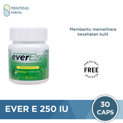 Ever E 250 merupakan suplemen yang mengandung 250 IU vitamin E dan kaya akan antioksidan yang bagus untuk membantu memelihara kesehatan kulit dari paparan efek radikal bebas. Ever E 250 menggunakan kapsul lunak Vegicaps yang terbuat dari bahan rumput laut sehingga cocok digunakan oleh vegetarian.