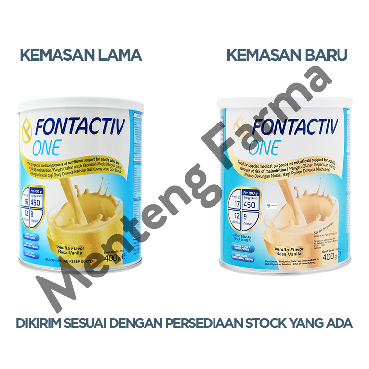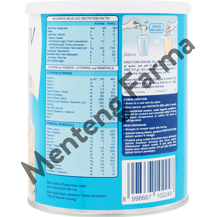 Tuangkan 4 sendok (57g) FONTACTIVE ONE ke dalam 200 ml air, aduk hingga larut dan segera habiskan.