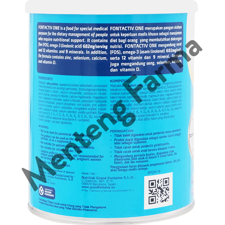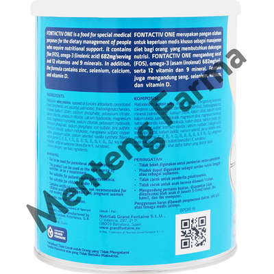 FontActiv One merupakan pangan olahan untuk keperluan medis khusus sebagai manajemen diet bagi orang yang membutuhkan dukungan nutrisi. Produk ini mengandung serat (FOS), omega-3 (asam linolenat) 682mg/saji, serta 12 vitamin dan 9 mineral. Selain itu formulanya juga mengandung seng, selenium, kalsium, dan vitamin D. Tidak mengandung laktosa. Dapat digunakan sebagai sumber nutrisi tunggal atau sebagai suplemen.