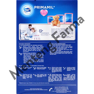 Susu Frisian Baby Primamil 0-6 Bulan merupakan susu formula awal untuk bayi usia 0-6 bulan sebagai pengganti Air Susu Ibu (ASI) bila terdapat indikasi medis, kondisi dimana ibu tidak ada, atau ibu terpisah dari bayi. Frisian Baby Primamil mengandung nutrisi penting yang membantu mendukung tumbuh kembang si kecil, dengan Prebiotik FOS untuk meningkatkan kinerja pencernaan si Kecil sehingga terhindar dari risiko konstipasi dan kolik yang biasanya menyebabkan ia sering menangis di malam hari serta14 Nutrisi penting lainnya seperti omega 3, 6, vitamin A, C, E, zinc, selenium, kalsium, vitamin D3.