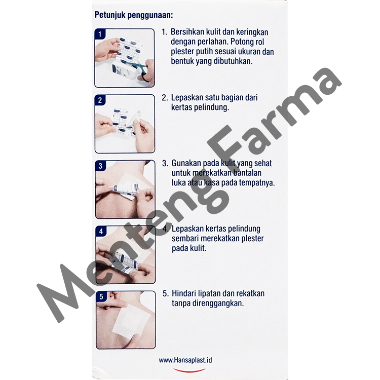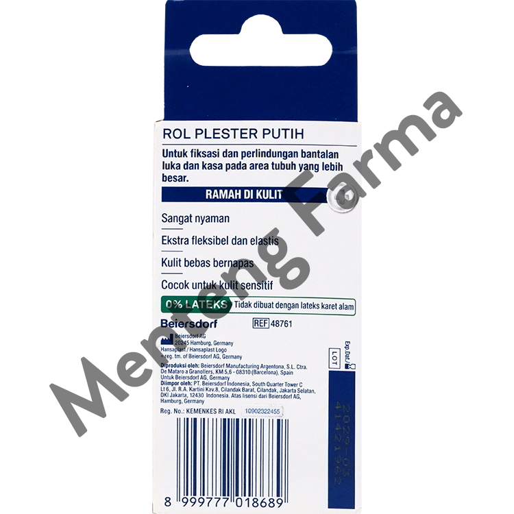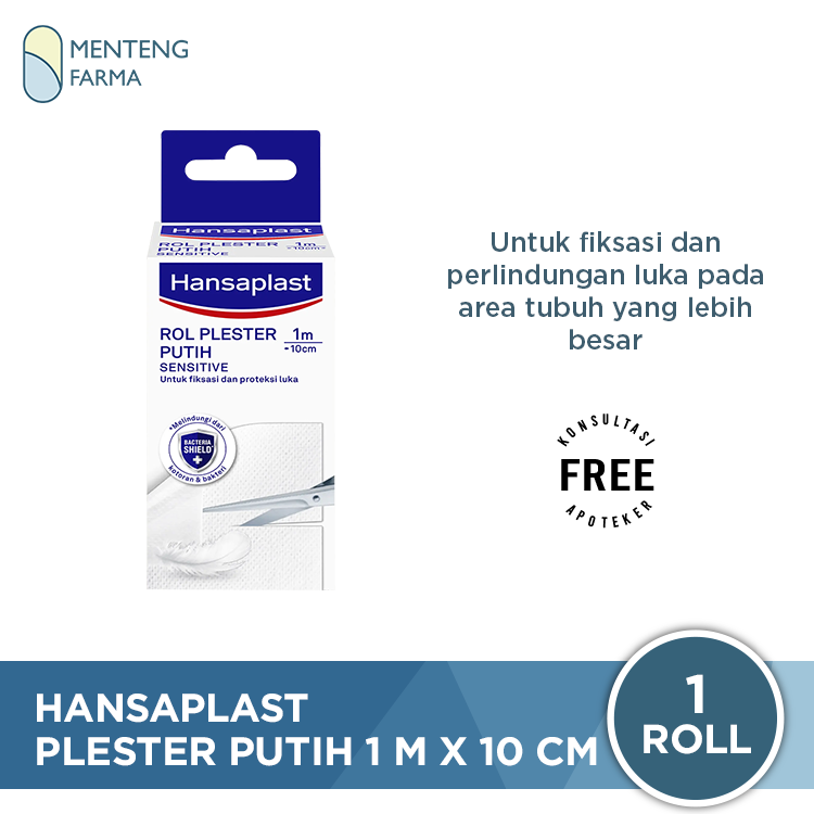 Hansaplast Rol Plester Putih digunakan sebagai bantalan luka atau kompres sebagai pembalut pertolongan pertama untuk melindungi luka dari bakteri dan kotoran. Bahan yang lembut, berpori dan ekstra fleksibel memudahkan kulit bebas bernafas dan memastikan kenyamanan saat digunakan terutama pada area tubuh yang lebih besar seperti punggung dan perut - atau pada bagian tubuh bersendi.