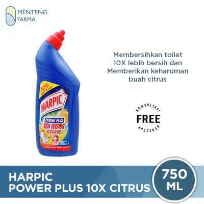 Harpic Power Plus 10X Max Clean Citrus merupakan pembersih toilet dengan formula keharuman khas buah citrus yang tahan lama, dapat menghilangkan noda membandel 10x lebih baik dibanding produk sejenis dan melindungi dari kuman bakteri.Harpic Power Plus bekerja dengan baik, cukup siram cairan Harpic pada daerah yang akan dibersihkan, biarkan cairan menyebar dari atas hingga lekukan terdalam, lalu diamkan selama 20 menit, dan Harpic akan membersihkannya. Harpic merupakan solusi cerdas untuk toilet bersih dan bebas dari kuman.