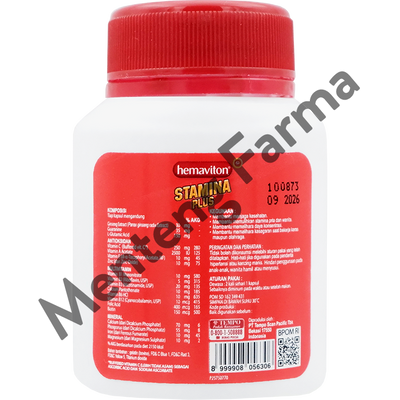 Hemaviton Stamina Plus 30 Kapsul merupakan suplemen kesehatan untuk membantu menjaga kesehatan, memulihkan stamina & memelihara daya konsentrasi. Hemaviton Stamina Plus di dalamnya mengandung formula seperti, Vit B Complex, Buffered Vitamin C*, Zinc, Vit A & E, Ginseng Extract, Guaranine, L-Glutamic Acid dan Mineral.