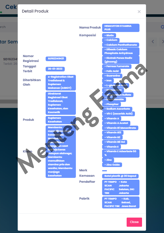 Produksi Oleh : PT Tempo Scan Pacific Tbk (Bekasi, Indonesia)
