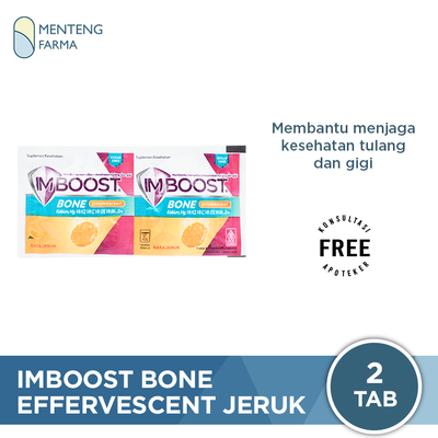 Imboost Bone Effervescent adalah suplemen kesehatan tulang dengan formulasi yang menggabungkan Calcium, Vit K2 dan Magnesium yang membantu penyerapan kalsium secara optimal ke dalam tulang. Dilengkapi dengan Vit C , Vit D3 Vit B6 dan Zinc hanya dalam satu tablet effervescent. Membantu memelihara kesehatan tulang dan gigi.