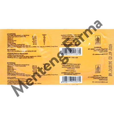 Tiap tablet mengandung : Calcium 250 mg, Vitamin C 500 mg, Vitamin D 400 IU, Vitamin B6 HCI 15 mg, Vitamin K2 50 mcg, Zinc Picolinate 10 mg, Magnesium Glycerophospate 50 mg