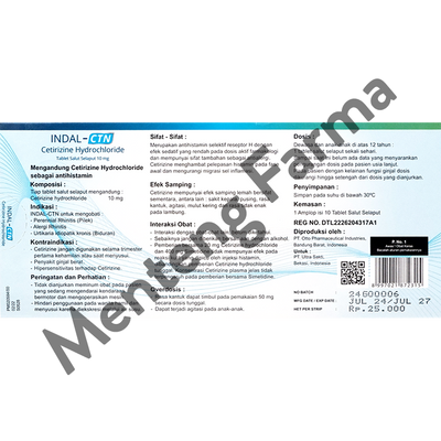 Indal-CTN mengandung Cetirizine Hydrochloride yang merupakan antihistamin selektif reseptor H dengan efek sedatif yang rendah pada dosis aktif farmakologi dan mempunyai sifat tambahan sebagai antialergi. Cetrizine menghambat pelepasan histamin pada fase awal dan mengurangi migrasi sel inflamasi.