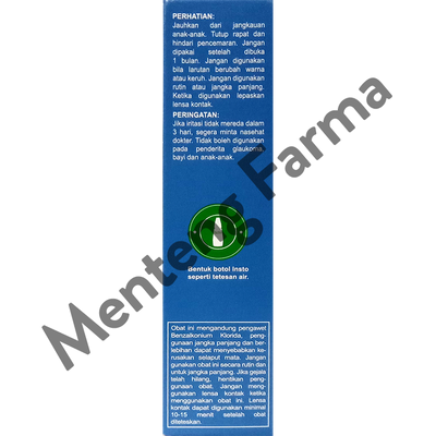 Insto Cool merupakan obat tetes mata yang digunakan untuk meredakan sementara mata merah akibat iritasi ringan yang disebabkan oleh debu,asap,angin, sengatan sinar matahari, pemakaian lensa kontak, alergi ataupun berenang.