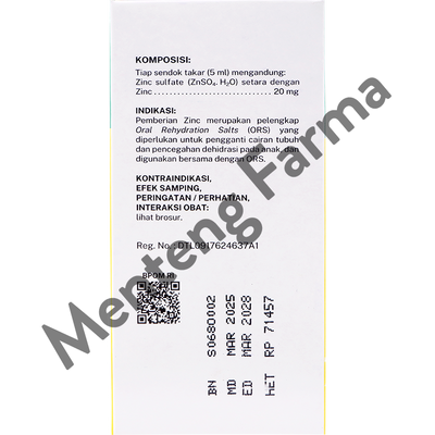 Komposisi : Tiap sendok takar (5 ml) mengandung : Zinc sulfate (ZnSO4. H2O) setara dengan Zinc 20 mg