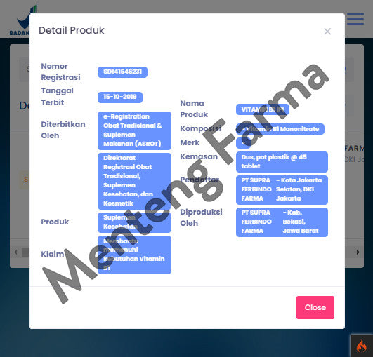 Produksi Oleh : PT. Supra Ferbindo Farma
