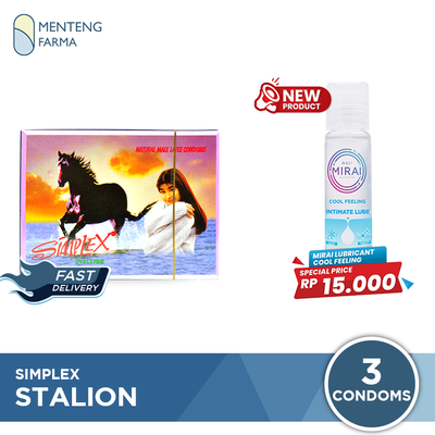 Kondom Simplex Stallion adalah kondom berkualitas tinggi yang didesain khusus untuk memberikan kepuasan maksimal pada pasangan. Kondom ini memiliki ukuran yang lebih besar dari kondom biasa, sehingga memberikan kenyamanan ekstra dan tidak terlalu ketat pada organ intim pria.
