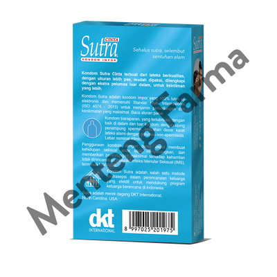 Kondom Sutra Love terbuat dari lateks berkualitas, dengan ukuran lebih pas, mudah dipakai, dilengkapi dengan ekstra peluman luar dalam, untuk keintiman yang lebih. Kondom transparan yang terlubrikasi dengan baik di dalam dan luar kondom, dengan ujung penampung sperma, berbahan dasar karet lateks alami dengan pelumas non-spermisida.