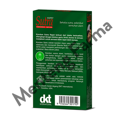 Kondom Sutra Rapet terbuat dari lateks berkualitas, dilengkapi dengan tekstur garis, bintil, kontur & ramuan manjakani untuk sensasi lebih rapat lebih berasa. Kondom warna alami, bertekstur, garis, bintil dan kontur dengan ujung penampung sperma, mengandung karet lateks alami dengan pelumas non-spermisida.