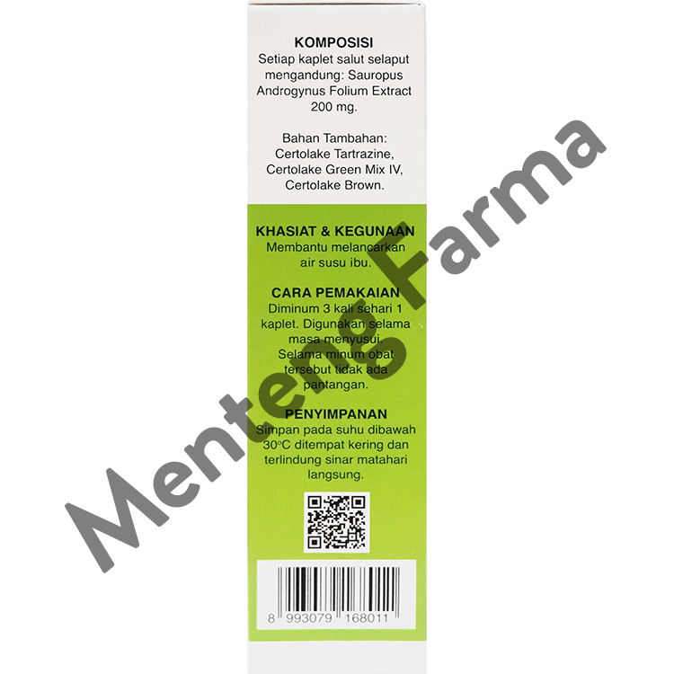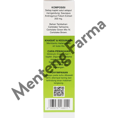 Setiap kaplet salut selaput mengandung : Sauropus Andrygynus Folium Extract 200 mg