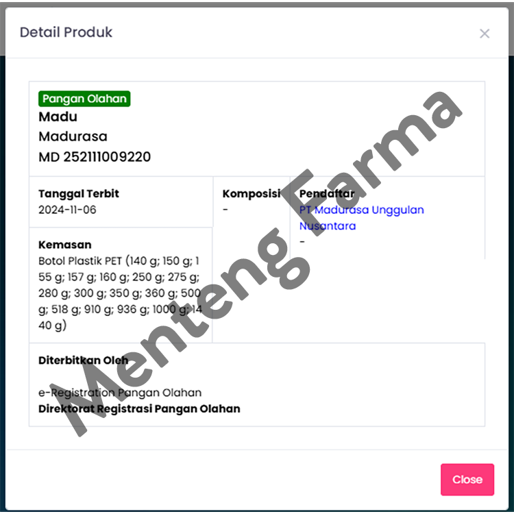 BPOM No : MD 252111009220