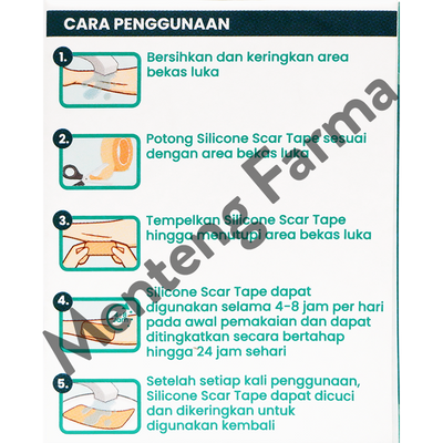 - Silicone Scar Tape dapat digunakan selama 4-8 jam per hari pada awal pemakaian dan dapat ditingkatkan secara bertahap hingga 24 jam sehari