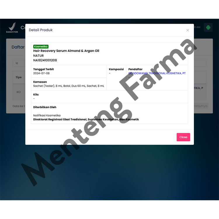 BPOM No : NA 18241001208