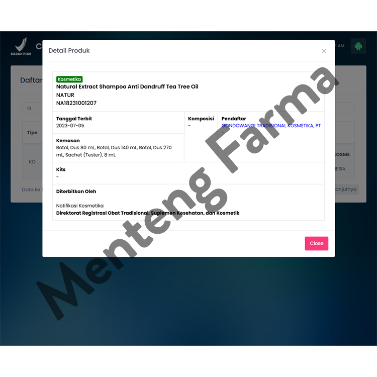 Diproduksi Oleh : PT. Gondowangi Tradisional Kosmetika
