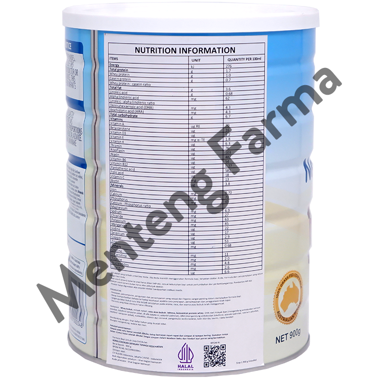 Komposisi : Demineralised whey powder, vegetable oil blend (Soy, Palm, High Oleic Sunflower, Coconut), Skim milk solids, Lactose, Whey protein concentrate, Emulsifier (soy Lecithin), Docosahexaenoic Acid (DHA, from fish oil), Arachidonic acid (ARA), Nucleotides (Adenoside 5"-monophosphate, Cytidine 5'-monophosphate, Guanosine 5'-monophosphate sodium salt, Inosine 5'-monophosphate sodium salt, Uridine 5'-monophosphate sodium salt), Choline Chloride, Taurine, L-carnitine, lutein, Minerals, etc.