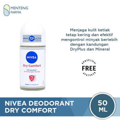 Nivea Dry Comfort Deodorant Roll On 50ml - Menjaga Kulit Ketiak Tetap Kering dan Mengontrol Bau Keringat