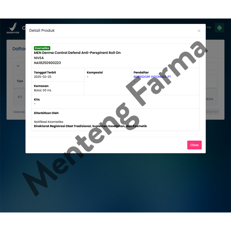 Kemasan : Botol, 50 ml