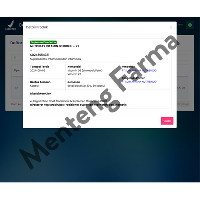 Komposisi: Water Dispersible Vitamin D3 800 IU, Vitamin K2 as Menaquinone-7 40 mcg