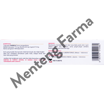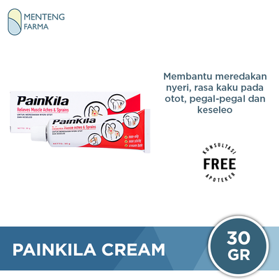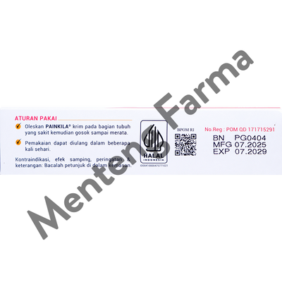 Painkila Cream merupakan krim yang membantu dalam meredakan rasa nyeri dan rasa kaku pada otot, nyeri akibat terkilir, serta pegal-pegal sehabis bekerja keras atau berolahraga. Krim ini mudah diserap kulit, tidak berminyak dan tidak lengket.