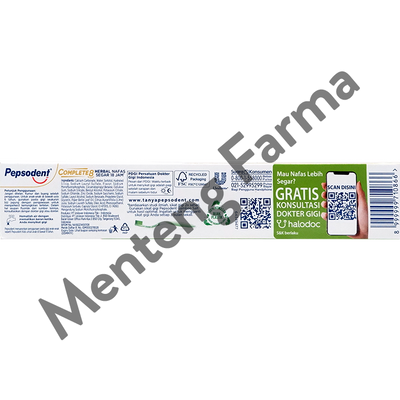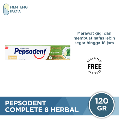 Pepsodent Complete 8 Herbal merupakan produk pasta gigi yang diformulasikan dengan natural essentials seperti Ekstrak Daun Sirih, Jeruk Nipis, dan Garam yang dapat membantu merawat kondisi gigi dan mulut serta memberikan sensasi dingin agar mulut tetap segar.