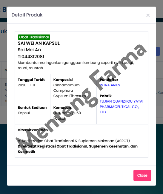 Diproduksi Oleh : Fujian Quanzhou Yatai Medicine Co.,Ltd