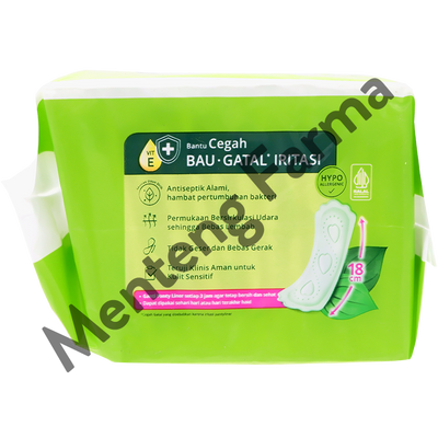 Softex Daun Sirih Pantyliner Longer Wider dengan panjang 18 cm yang mengandung ekstrak Daun Sirih dan Vitamin E yang membantu mencegah bau dan gatal iritasi. Dengan antiseptik alami yang menghambat pertumbuhan bakteri, permukaan bersirkulasi udara sehingga bebas lembab. Tidak geser dan bebas gerak, serta telah teruji klinis aman untuk kulit sensitif.