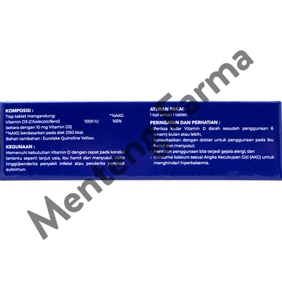 Tiap tablet mengandung Vitamin D3 1000 IU