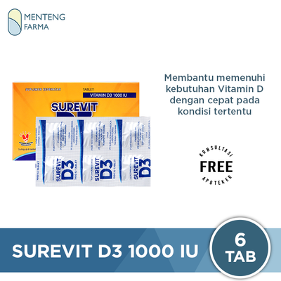Surevit D3 1000 IU merupakan suplemen kesehatan yang membantu dalam memenuhi kebutuhan Vitamin D dengan cepat pada kondisi tertentu seperti lanjut usia, ibu hamil dan menyusui, risiko tinggi/penderita penyakit infeksi atau penderita penyakit autoimun.